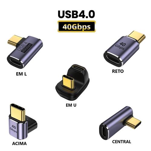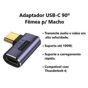 Adaptador USB-C 4.0 90° 40gbps Macho para Fêmea Áudio Vídeo