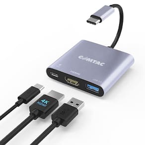 Com o adaptador de USB C para AV digital multiportas Comtac, você pode conectar seu Mac ou iPad com porta USB C a um monitor HDMI, um dispositivo com conector USB 3.0 padrão e um cabo carregador USB C simultaneamente.
