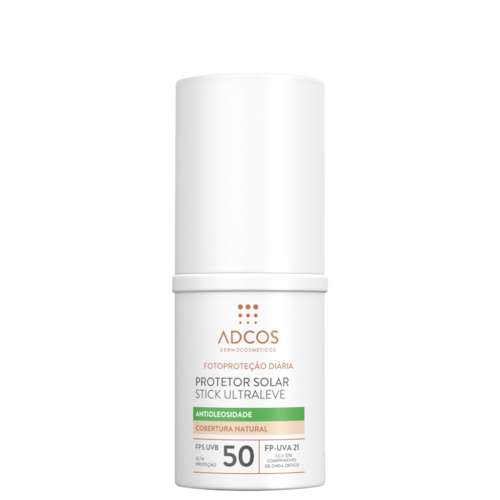 O Protetor Solar Adcos Fotoproteção Diária Stick Ultraleve FPS 50 conta com toque e textura leve que promove ação antioleosidade por 12 horas e redução de poros. Ideal para peles oleosas devido ao seu complexo antibrilho, esse protetor solar stick disfarça imperfeições, possui ação antioxidante, antiglicante, antipoluição, protege o DNA celular, tem alta proteção solar e é resistente à água.
