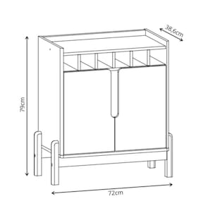 O Bar com Adegas, é perfeito para sua sala de estar ou jantar! Foi desenvolvido pensando na praticidade do seu dia a dia aliado à beleza de seu ambiente, possui 6 compartimentos para armazenar garrafas deitadas e 2 portas com dobradiças. Tudo isso para lhe proporcionar melhor experiência na recepção de suas visitas e organizar suas bebidas.