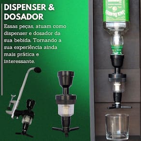 OBS: Dosador não compatível com bebidas licorosas com maior densidade. O acúmulo de resíduos pode ocasionar o entupimento do Dosador, possibilitando a ocorrência de vazamentos. Para uma maior durabilidade. Ao realizar a troca de garrafa (bebida) nós aconselhamos você a realizar a lavagem do Dosador.