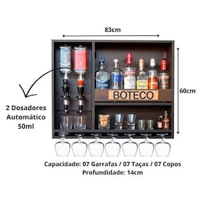 Fabricado em MDF de alta qualidade, tornando-se resistente e elegante para compor a decoração da sua casa, surpreendendo seus amigos e familiares com muito bom gosto! Com capacidade para até 8 garrafas (em média) e espaço para expor até 7 taças e copos, você terá sempre à mão as bebidas e taças perfeitas para acompanhar seus momentos especiais.