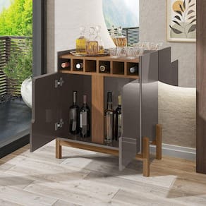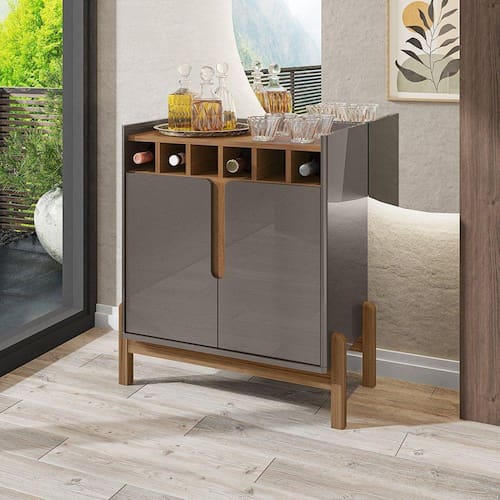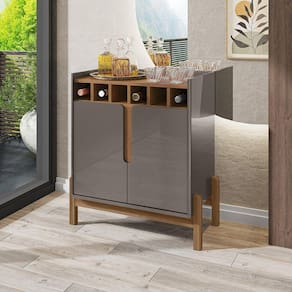 O Bar Lizz com Adegas, é perfeito para sua sala de estar ou jantar! Foi desenvolvido pensando na praticidade do seu dia a dia aliado à beleza de seu ambiente, possui 6 compartimentos para armazenar garrafas deitadas, 2 portas com dobradiças com sistema Soft close, Pés de madeira maciça. Tudo isso para lhe proporcionar melhor experiência na recepção de suas visitas e organizar suas bebidas. Acabamento da Porta: Pintura UV Acabamento dos Pés: Verniz Altura dos Pés: 25 Ambiente Principal: Sala de Jantar Bandeja: Bandeja Não Removível Complexidade da Montagem: Baixa: pode ser montado por uma pessoa sozinha Cor: Cinza Perola/Cedro Cor do Produto: Cinza Perola/Cedro Escala de Brilho: Semi-Brilho Escala de Brilho da Porta: Semi-Brilho Itens Inclusos: 1 Bar, Kit Ferragens e Manual de Montagem Linha ou Coleção: Lizz Manual de Montagem e Instalação: https://product-hub-prd.madeiramadeira.com.br/812630/documents/812630_manual.pdf Material da Porta: MDF Material dos Pés: Madeira Maciça Material Principal: MDF/MDP Necessita Montagem: Sim Origem do Produto: Nacional Pés Reguláveis: Não Peso: 21.9 Porta Rolhas/Tampinhas: Não Porta Taças: Não Porta-garrafas: 06 Possui Adega: Sim Possui Espelho: Não Possui Gavetas: Não Possui iluminação: Não Possui Pés: 04 Possui Portas: 02 Possui Prateleiras: Não Possui Rodízio: Não Possui Vidro: Não Quantidade de Garrafas da Adega: 06 Recomendações de Uso, Manutenção e Limpeza: Recomenda-se limpar o produto com flanela ou pano macio seco, não utilizar produtos abrasivos, desengordurantes, álcool ou solvente. Mantê-lo em lugar livre de umidade e/ou exposição direta ao sol. Sapatas Niveladoras: Não Sistema de Montagem: Parafusos, Minifix, Cavilhas e Pregos Suporta Até (kg): 1.2 Tipo de Dobradiça/Corrediça da Porta: Metálica Tipo de Madeira Maciça dos Pés: Madeira Maciça Tipo de Porta: Bater Tipo de Puxador da Porta: Embutido