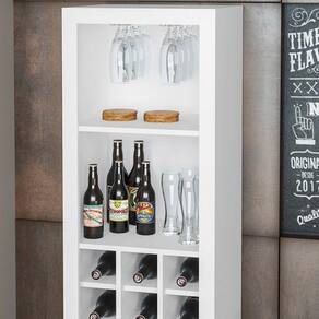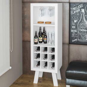 aparador adega com certeza são os detalhes, pois ela possui 1 prateleira, espaço para 9 garrafas e suporte metálico para taças. Incrível, né? Aliás, possui pés em madeira que dão um toque retrô, podendo fazer parte da