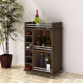 O bar adega Ibiza DJD é perfeito para sua sala de jantar ou estar, com design clean e moderno você vai ter lugar para armazenar taças, vinhos e bebidas em geral. Ele tem 6 nichos para garrafas e uma prateleira interna, é feito todo em MDP 15 mm e tem rodízios que permitem que você leve seu bar para qualquer lugar da casa. Ambiente Principal: Sala de Estar Bandeja: Não Possui Complexidade da Montagem: Média: pode ser montado por mais de uma pessoa e/ou necessite de maior conhecimento para montagem Cor: Carvalho Cor do Produto: Carvalho Cor Interna: Carvalho Escala de Brilho: Fosco Itens Inclusos: 1 Adega, Kit Ferragens e Manual de Montagem Linha ou Coleção: AD301 Manual de Montagem e Instalação: https://product-hub-prd.madeiramadeira.com.br/722806/documents/ef30008b-d8eb-405d-a45f-eea41a47b5a17574170993manualadegaad301.pdf Material dos Pés: Plástico Material Principal: MDP Necessita Montagem: Sim Origem do Produto: Nacional Peso: 20 kg Porta Rolhas/Tampinhas: Não Porta Taças: Não Porta-garrafas: 06 Possui Adega: Sim Possui Espelho: Não Possui Gavetas: Não Possui iluminação: Não Possui Pés: 04 Possui Portas: Não Possui Prateleiras: Não Possui Rodízio: Sim Possui Vidro: Não Quantidade de Garrafas da Adega: 06 Recomendações de Uso, Manutenção e Limpeza: Pano seco ou levemento umidecido com agua Rodízio com Trava: Não Sapatas Niveladoras: Não Sistema de Montagem: Parafusos e cavilhas Suporta Até (kg): 25 kg