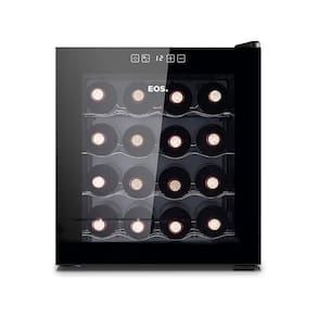 Adega climatizada EOS Sommelier EAE16 Bivolt com capacidade para 16 garrafas, painel touch, porta full glass, prateleiras cromadas, puxadores embutidos e iluminação LED.Capacidade total de garrafas