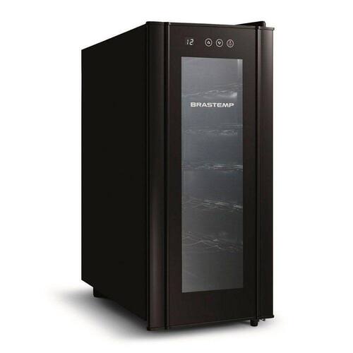 Adega Climatizada Brastemp, a Adega Climatizada tem dimensoes compactas, Controle Eletronico Touch Sensor com display de temperatura na porta e Iluminacao LED, que melhora a visualizacao interna. Tudo com capacidade para 12 garrafas.