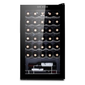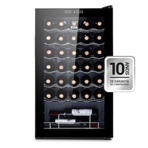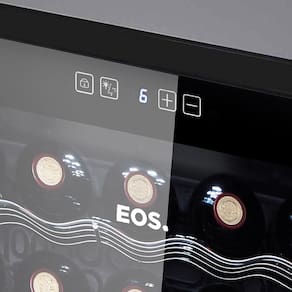 Adega Climatizada EOS com capacidade para 34 garrafas, refrigeração por compressor, sistema antivibração, controle eletrônico de temperatura, iluminação interna em LED, porta full glass com trava, prateleiras cromadas, puxadores embutidos e painel touch screen.Capacidade total de garrafas