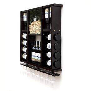 Adega de Madeira Maciça para 15 Garrafas com Porta Rolhas e Taças - Nogueira Adega em Madeira Maciça para Garrafas de Vinho com Porta Rolhas e Porta Taças Cor Nogueira - Fabricada em Madeira Maciça, Certificada e Sustentável; - Exclusivo Porta Rolhas com vidro frontal adesivado e fundo removível, facilitando a limpeza e a retirada das rolhas; - Comporta até 15 Garrafas de Vinho e 8 Taças; - Dimensões do Produto: 75cm de Altura, 80cm de comprimento e 12cm de Largura; - Acompanha Kit de Fixação; - O produto é enviado MONTADO. Garrafas e Taças não Acompanham o Produto Marca: Delenha Decor