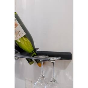 organize foi desenhada para acomodar duas garrafas e duas taças de vinhos e espumantes dos mais variados padrões. É perfeita para quem dispõe de pouco espaço e preza por praticidade e organização, além de ser ideal para presentear os admiradores dessas bebidas. O ângulo de 30° permite o armazenamento de forma correta das bebidas, mantendo a rolha úmida e evitando a passagem de oxigênio que poderá estragar a bebida. A instalação pode ser feita em paredes como item decorativo ou dentro de armários e cristaleiras. Acabamento Pintando Preto.