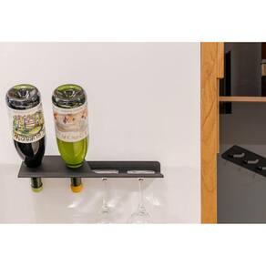 Mini Adega de Parede Cinza Suporte para 2 Garrafas de Vinho Espumante e Porta 2 Taças Masutti.