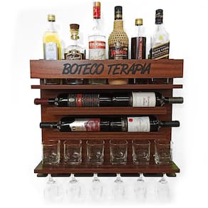 Impressione á todos deixando suas bebidas bem visíveis e organizadas com o nosso BARZINHO de PAREDE. O mdf na cor Nogueira torna a peça Especial, pois seus veios imitam muito bem a Madeira Natural. E pra completar, ocupando pouquíssimo espaço em seu ambiente, você consegue organizar suas bebidas e taças. Capacidade Aproximada para 6 Garrafas + 6 Copos + 6 Taças + 4 Garrafas de Vinho Feito em Mdf 15mm, o que torna a peça bem firme e visualmente muito Bonita. O desenho e a cor da chapa dão um acabamento INCRÍVEL á peça, que dessa forma é capaz de deixar qualquer ambiente muito mais Aconchegante e Agradável. Além de decorar muito bem qualquer ambiente, ele também pode ser um ÓTIMO PRESENTE. Principais Características: • Feito 100% em Mdf 15mm Bilaminado • Capacidade Aproximada para 6 Garrafas + 6 Copos + 6 Taças + 4 Garrafas de Vinho • Dimensões: 60cm de largura x 51cm de altura x 13cm de profundidade Acompanha parafusos e buchas para fixação. Indicações de Uso: PUB’s Home Bar Varandas e Sacadas com temática Gourmet Cozinhas Salas em Geral Churrasqueiras Obs: Imagem Meramente Ilustrativa, Copos, Garrafas e Demais Acessórios Não Acompanham o Produto