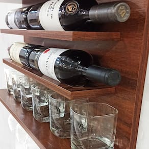 Chegou nosso novo Bar de Parede com adega! Um produto exclusivo para você! Impressione à todos deixando suas bebidas visíveis e organizadas com o nosso BAR E ADEGA. Se você está a procura de algo diferenciado, de qualidade e com acabamento impecável, acabou de encontrar! Esse barzinho possui um tamanho compacto mas ao mesmo tempo consegue armazenar aproximadamente 6 garrafas de bebidas no topo, mais 4 garrafas de vinho até 1 litro do centro, aproximadamente 6 copos de whisky e mais 6 taças ao fundo. Incrivel não é? Criamos produtos exclusivos e com a qualidade que você procura. Não perca tempo essa peça pode ser sua agora. CARACTERÍSTICAS: Marca: Co2BeerModelo: Bar Wine Material: MDF Bilaminado de 15mm.Dimensões: 60cm de largura x 51cm de altura x 13cm de profundidadeCapacidade: Aproximadamente 6 Garrafas + 6 Copos wisky + 6 Taças de vinho/espumante. IDEAL PARA OS SEGUINTES AMBIENTES: * PUB’s* Home Bar* Varandas e Sacadas com temática Gourmet* Clubes e Grupos de degustação de Cervejas* Cozinhas* Salas em Geral* Churrasqueiras Obs.: Copos, garrafas e demais acessórios não acompanham o produto