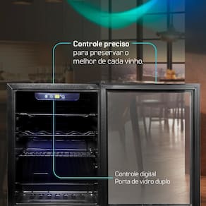 Com porta de vidro duplo e prateleiras revestidas, a adega oferece isolamento térmico superior e um armazenamento . Seu design compacto e moderno se adapta a qualquer ambiente, seja em uma cozinha planejada, sala de estar ou área gourmet.