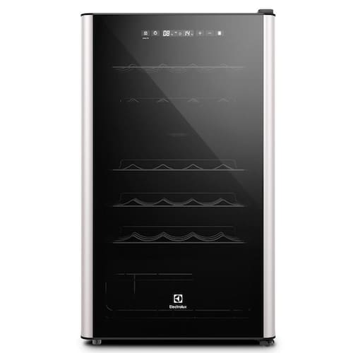 Adega Electrolux para 29 garrafas com Dual Zone, painel Touch Control, temperatura ajustável de 5°C a 18°C, iluminação LED, baixo nível de ruído e pés niveladores.Capacidade total de garrafas