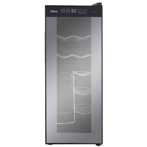 A Adega de Vinhos Philco PH12E comporta até 12 garrafas. Ela conta com luz interna em LED para você encontrar a garrafa desejada sem esforço. Tem um design discreto na cor preta e sua porta é de vidro duplo.
