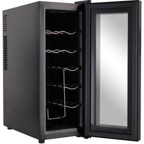 Capacidade total de garrafas: 12 Garrafas Controle de temperatura: Sim Luz interna: Sim Porta reversível: Não Cor: Preto Consumo (kWh): 1,75 Tensão/Voltagem: 220V - 110V Potência: 70W Temperatura: 10ºC a 18ºC Garantia: 12 meses