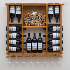 A Adega Delenha Decor é perfeita para os amantes de vinho que desejam ter um cantinho especial para as bebidas e ainda complementar a decoração do ambiente. Fabricada artesanalmente em madeira maciça legalizada e sustentável, esta adega comporta 15 garrafas de vinho e oito taças. Além disso, conta com exclusivo porta-rolhas com vidro frontal adesivado e fundo removível, facilitando a limpeza e a retirada das rolhas.Características:- Adega em madeira maciça - Para 15 garrafas de vinho - Com porta-rolhas- Com porta-taças- Acabamento Padrão CerejeiraEspecificações técnicasMarca: Delenha Decor Modelo: CerejeiraMaterial: Madeira Maciça, Certificada e SustentávelCapacidade: Até 15 garrafas de vinho e 8 TaçasDimensões AxLxP : 75 x 80 x 12 cm Acompanha: Kit de FixaçãoProduto enviado montado: Sim Marca: Delenha Decor