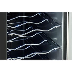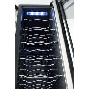 O interior foi projetado para garantir organização e cuidado com cada rótulo. As Prateleiras cromadas, ergonômicas e removíveis facilitam o manuseio e permitem acomodar as garrafas com mais segurança e estabilidade. A Luz Interna em LED proporciona melhor visualização sem interferir na qualidade do vinho, além de valorizar a apresentação das garrafas com um toque moderno e discreto.