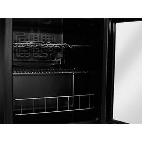 Adega climatizada com refrigeração por compressor, porta em aço inox com vidro integrado, iluminação interna com LEDs, display digital para controle de temperatura, prateleiras cromadas removíveis e pode ser embutida.Capacidade total de garrafas