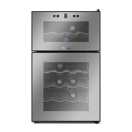 Adega Philco 69L com capacidade para 24 garrafas, controle digital de temperatura (8°C a 18°C), sistema de refrigeração termoelétrico, prateleiras cromadas deslizantes e reguláveis, porta com vidro duplo e iluminação interna em LED.Capacidade total de garrafas