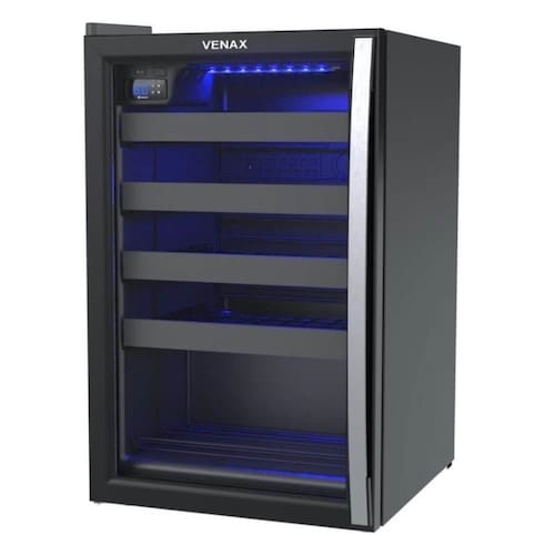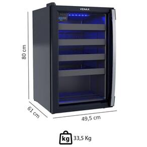 ADEGA PIUBELLA VENAX 100 220V PARA 24 GARRAFAS PRETO PORTA INVERTIDA ILUMINAÇÃO LED AZUL 19928