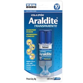 Cola multiuso que proporciona excelente acabamento, Araldite Transparente é indicado para colar pequenas superfícies de materiais lisos, porosos ou irregulares, como azulejos, madeira, vidro, concreto, borracha, fibras naturais, pedras, metais, a maioria dos plásticos rígidos (exceto polipropileno, polietileno e Nylon) e outros materiais. Resiste a temperatura de até 70°C, secagem inicial em 10 minutos e secagem total em 8 horas.