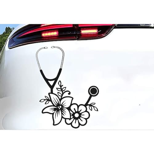 Adesivo de carro estetoscópio com flores As imagens anunciadas são ilustrativas Tamanho do adesivo O adesivo da foto parece grande