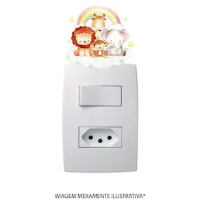 Adesivo de interruptor safari - arco iris As imagens anunciadas são ilustrativas Tamanho do adesivo O adesivo da foto parece grande Então atenção: O modelo que está na foto não se refere ao tamanho do adesivo anunciado. deixamos o adesivo grande para que você possa visualizar melhor o produto que está comprando