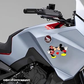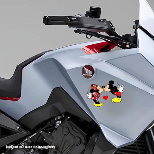 Adesivo de moto mickey e minnie colorido As imagens anunciadas são ilustrativas Tamanho do adesivo O adesivo da foto parece grande