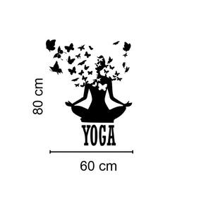 Adesivo de parede de yoga meditação com borboletas Medida: 60 x 80 cm As imagens anunciadas são ilustrativas Tamanho do adesivo O adesivo da foto parece grande