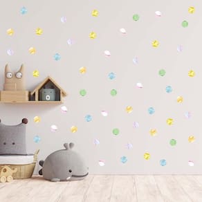 Adesivo De Parede Decorativo Bolinhas 2 medidas MEDIDAS - Kit 1 folha com: * 16 bolinhas rosas - 5cmx5cm * 16 bolinhas azuis - 5cmx5cm * 16 bolinhas verdes - 5cmx5cm * 16 bolinhas laranja - 5cmx5cm * 16 bolinhas amarelas - 5cmx5cm * 12 bolinhas rosas - 8cmx8cm * 12 bolinhas azuis - 8cmx8cm * 12 bolinhas verdes - 8cmx8cm * 8 bolinhas laranjas - 8cmx8cm * 8 bolinhas amarelas - 8cmx8cm MATERIAL -adesivo vinílico fosco não tóxico TIPO DE IMPRESSÃO - Impressão em alta resolução livre de imperfeições. OBSERVAÇÕES Podem ser colocados no quarto das crianças, na sala de estudos, no escritório, na geladeira, na sala de brinquedos, no box do banheiro ou em muitos outros lugares. A aplicação é muito simples, é só tirar o adesivo e colar como quiser. Os Adesivos já seguem com os recortes para agilizar e facilitar sua instalação, cortes feitos com alta precisão no momento da impressão para garantir a melhor qualidade. Podem ser aplicados em paredes lisas, com tinta acetinada, latex e acrílica, móveis, espelhos, portas, box de banheiro, livres de poeira ou pó de gesso. Não aplicar sobre tinta fresca, tinta magnética, superfícies irregulares ou texturizadas, locais com infiltrações. * Imagem ambiente ilustrativa PRODUTO NÃO TOXICO
