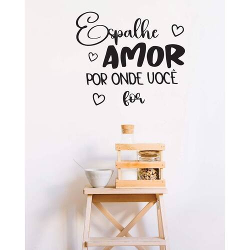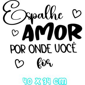 Adesivo de parede espalhe amor Medida: 40 x 34 cm As imagens anunciadas são ilustrativas Tamanho do adesivo O adesivo da foto parece grande Então atenção: O modelo que está na foto não se refere ao tamanho do adesivo anunciado. deixamos o adesivo grande para que você possa visualizar melhor o produto que está comprando Vantagens: - já vai recortado - fácil aplicação e sem sujeira, não precisa de cola. - acompanha manual impresso. - renovação do ambiente. É o fim das paredes brancas, sem vida Onde aplicar Em qualquer superfície lisa. Onde não aplicar Paredes úmidas, superfícies porosas, com relevo, com texturas, irregularidades ou com infiltrações. Local para aplicação: aplique onde sua imaginação mandar paredes, móveis, revestimentos, azulejos, tetos, janelas, portas, vitrines, vidraças, , carros, notebook, banheiro, geladeira e muito mais. Marca: Não Informado