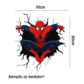 Adesivo de parede homem aranha mod55 Medida: 70 x 80 cm Atenção as medidas Os adesivos decorativos são produzidos com material de alta qualidade. As imagens anunciadas são ilustrativas