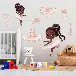 - 1 Folha de Adesivo de Parede Infantil Bailarina Menina Vestido Tutu;
