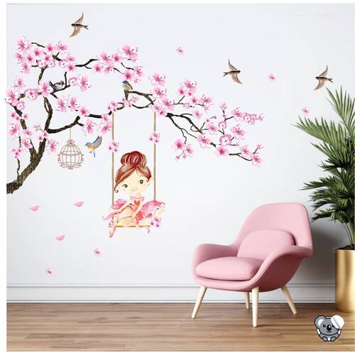 Adesivo de Parede Infantil Cerejeira e Bailarina no Balanço