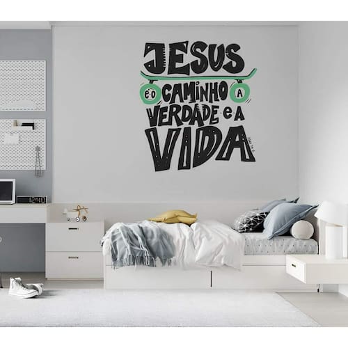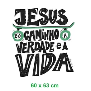 Adesivo de parede jesus é o caminho Medida: 60 x 63 cm As imagens anunciadas são ilustrativas Tamanho do adesivo O adesivo da foto parece grande Então atenção: O modelo que está na foto não se refere ao tamanho do adesivo anunciado. deixamos o adesivo grande para que você possa visualizar melhor o produto que está comprando Vantagens: - já vai recortado - fácil aplicação e sem sujeira, não precisa de cola. - acompanha manual impresso. - renovação do ambiente. É o fim das paredes brancas, sem vida Onde aplicar Em qualquer superfície lisa. Onde não aplicar Paredes úmidas, superfícies porosas, com relevo, com texturas, irregularidades ou com infiltrações. Local para aplicação: aplique onde sua imaginação mandar paredes, móveis, revestimentos, azulejos, tetos, janelas, portas, vitrines, vidraças, , carros, notebook, banheiro, geladeira e muito mais. Marca: Não Informado