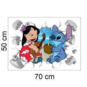 Adesivo de parede lilo e stitch tocando violão Medida: 70 x 50 cm As imagens anunciadas são ilustrativas Tamanho do adesivo O adesivo da foto parece grande