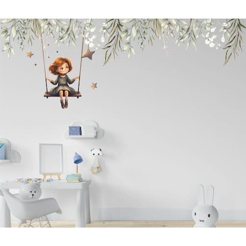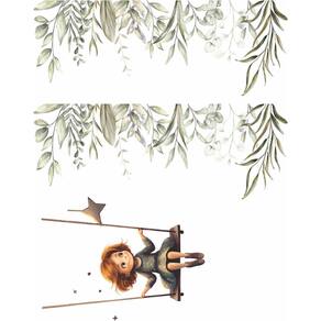 Medida: Contém: 02 Adesivos de Folhagens 1,15m x 45cm cada - Formando 2,30 x 45 de folhagens 01 Adesivos de Menina no balanço medindo 75 x 56cm