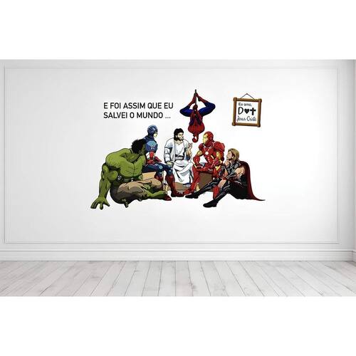 Adesivo de parede meu grande herói mod03 Medida: 70 x 48 cm As imagens anunciadas são ilustrativas Tamanho do adesivo O adesivo da foto parece grande