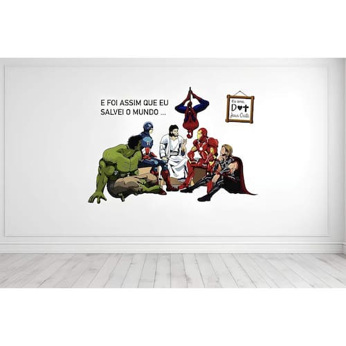 Adesivo de parede meu grande herói mod03 Medida: 80 x 55 cm As imagens anunciadas são ilustrativas Tamanho do adesivo O adesivo da foto parece grande