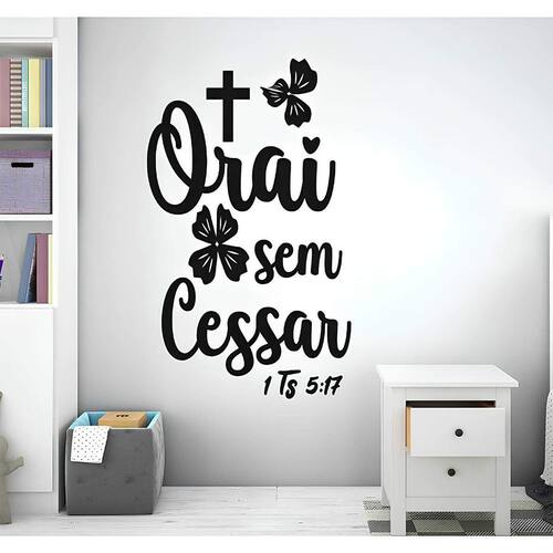 Adesivo de parede orai sem cessar Medida: 60 x 100 cm As imagens anunciadas são ilustrativas Tamanho do adesivo O adesivo da foto parece grande Então atenção: O modelo que está na foto não se refere ao tamanho do adesivo anunciado. deixamos o adesivo grande para que você possa visualizar melhor o produto que está comprando Vantagens: - já vai recortado - fácil aplicação e sem sujeira, não precisa de cola. - acompanha manual impresso. - renovação do ambiente. É o fim das paredes brancas, sem vida Onde aplicar Em qualquer superfície lisa. Onde não aplicar Paredes úmidas, superfícies porosas, com relevo, com texturas, irregularidades ou com infiltrações. Local para aplicação: aplique onde sua imaginação mandar paredes, móveis, revestimentos, azulejos, tetos, janelas, portas, vitrines, vidraças, , carros, notebook, banheiro, geladeira e muito mais. Marca: Não Informado Ean: 8001250014443