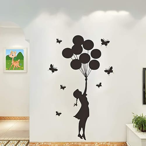Adesivo de parede silhueta menina balões e borboleta As imagens anunciadas são ilustrativas Tamanho do adesivo O adesivo da foto parece grande