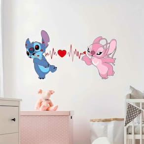 Adesivo de parede stitch e angel apaixonados As imagens anunciadas são ilustrativas Tamanho do adesivo O adesivo da foto parece grande Então atenção: O modelo que está na foto não se refere ao tamanho do adesivo anunciado. deixamos o adesivo grande para que você possa visualizar melhor o produto que está comprando Vantagens: - já vai recortado - fácil aplicação e sem sujeira, não precisa de cola. - acompanha manual impresso. - renovação do ambiente. É o fim das paredes brancas, sem vida Onde aplicar Em qualquer superfície lisa. Onde não aplicar Paredes úmidas, superfícies porosas, com relevo, com texturas, irregularidades ou com infiltrações. Local para aplicação: aplique onde sua imaginação mandar paredes, móveis, revestimentos, azulejos, tetos, janelas, portas, vitrines, vidraças, , carros, notebook, banheiro, geladeira e muito mais.