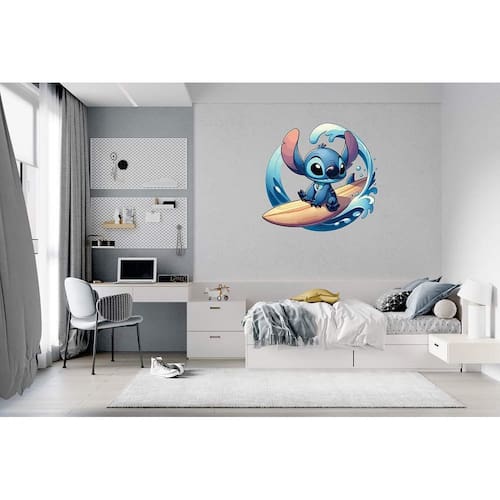 Adesivo de parede stitch surfando Medida: 50 x 46 cm As imagens anunciadas são ilustrativas Tamanho do adesivo O adesivo da foto parece grande Então atenção: O modelo que está na foto não se refere ao tamanho do adesivo anunciado. deixamos o adesivo grande para que você possa visualizar melhor o produto que está comprando Vantagens: - já vai recortado - fácil aplicação e sem sujeira, não precisa de cola. - acompanha manual impresso. - renovação do ambiente. É o fim das paredes brancas, sem vida Onde aplicar Em qualquer superfície lisa. Onde não aplicar Paredes úmidas, superfícies porosas, com relevo, com texturas, irregularidades ou com infiltrações. Local para aplicação: aplique onde sua imaginação mandar paredes, móveis, revestimentos, azulejos, tetos, janelas, portas, vitrines, vidraças, , carros, notebook, banheiro, geladeira e muito mais. Marca: Não Informado