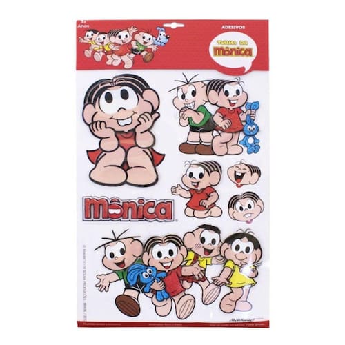 Divirta-se decorando! Mônica saiu dos quadrinhos para ficar com você! Seja no seu quarto, no seu espelho, na sua janela, no seu caderno. Torne o seu dia-a-dia muito mais animado e bonito com os adesivos 3D da Turma da Mônica.