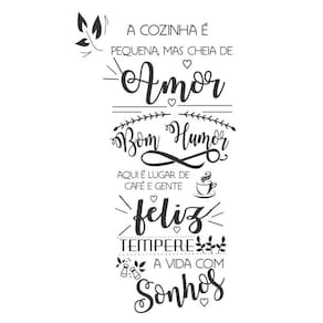Adesivo decorativo, parede frase cozinha pequena mas cheia de amor