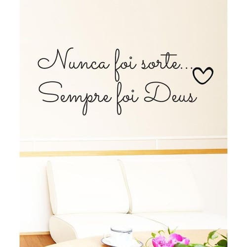 Adesivo decorativo de parede frase nunca foi sorte... Tamanho (alt.Xcomp.) 18 x 47 cm