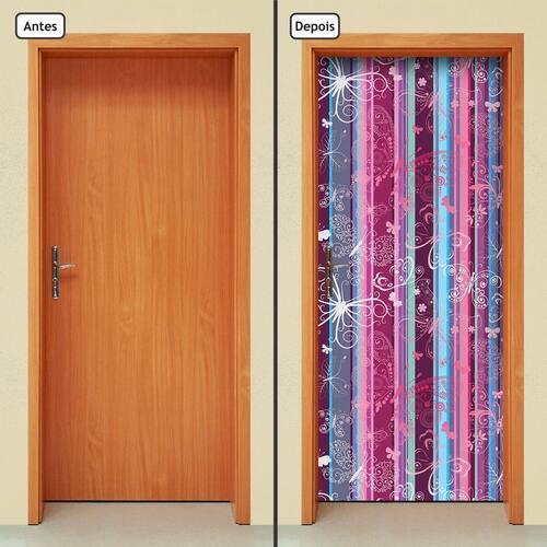 Adesivo Decorativo de Porta - Borboletas - Listras - Os Adesivos de Porta da Allodi foram feitos para transformar e dar mais vida aos ambientes, aplicados nas portas da sala, do quarto, dos corredores, dão uma cara nova ao seu ambiente, sem dor de cabeça e sem sujeira. - Fabricados em vinil adesivo de alta qualidade e em uma única peça(não utilizamos vinil promocional e nem enviamos em duas partes) não deixa emendas na colagem, garantindo maior qualidade e beleza no resultado final. - Produto de fácil instalação, enviado na medida padrão de 90cm x 210cm ele se adapta a todas as medidas de porta, bastando apenas remover as sobras de material ao final da colagem caso as medidas da sua porta sejam menores.