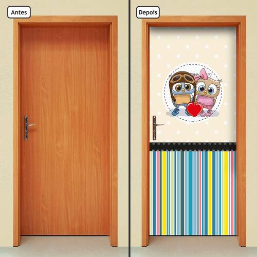 Adesivo Decorativo de Porta - Corujinhas - Os Adesivos de Porta da Allodi foram feitos para transformar e dar mais vida aos ambientes, aplicados nas portas da sala, do quarto, dos corredores, dão uma cara nova ao seu ambiente, sem dor de cabeça e sem sujeira. - Fabricados em vinil adesivo de alta qualidade e em uma única peça(não utilizamos vinil promocional e nem enviamos em duas partes) não deixa emendas na colagem, garantindo maior qualidade e beleza no resultado final. - Produto de fácil instalação, enviado na medida padrão de 90cm x 210cm ele se adapta a todas as medidas de porta, bastando apenas remover as sobras de material ao final da colagem caso as medidas da sua porta sejam menores.